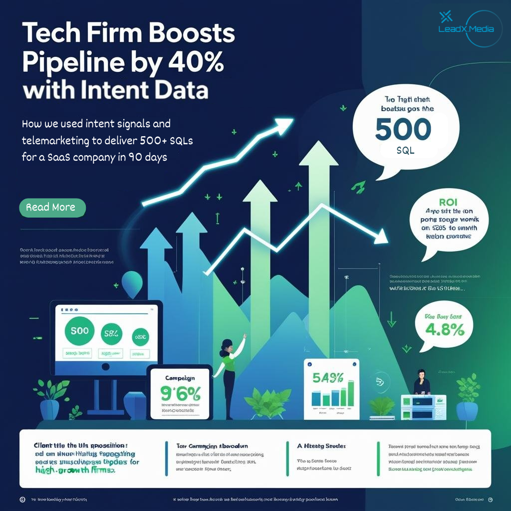 Details: How we used Bombora intent signals and telemarketing to deliver 500+ SQLs for a SaaS company in 90 days. Includes campaign breakdown, ROI stats, and client quotes.